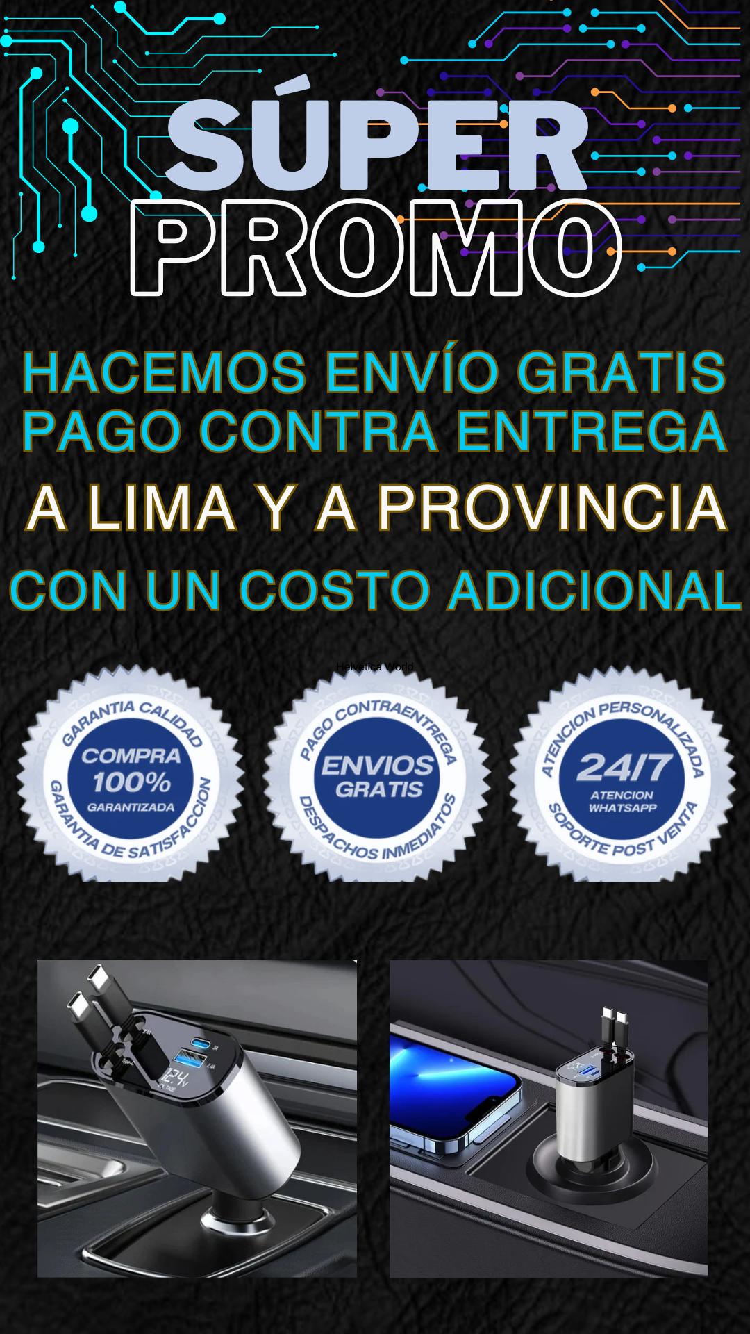 CARGADOR RETRACTIL 4 EN 1 DE 120W CON CARGA RAPIDA